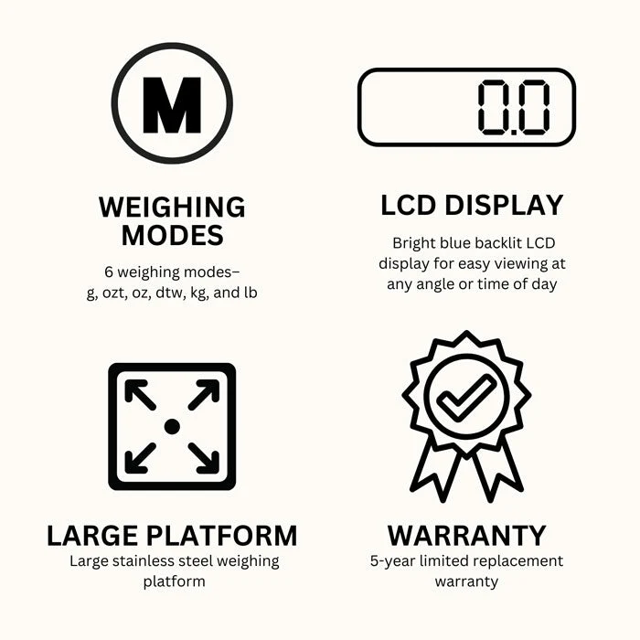 - Stainless steel calibration weight included